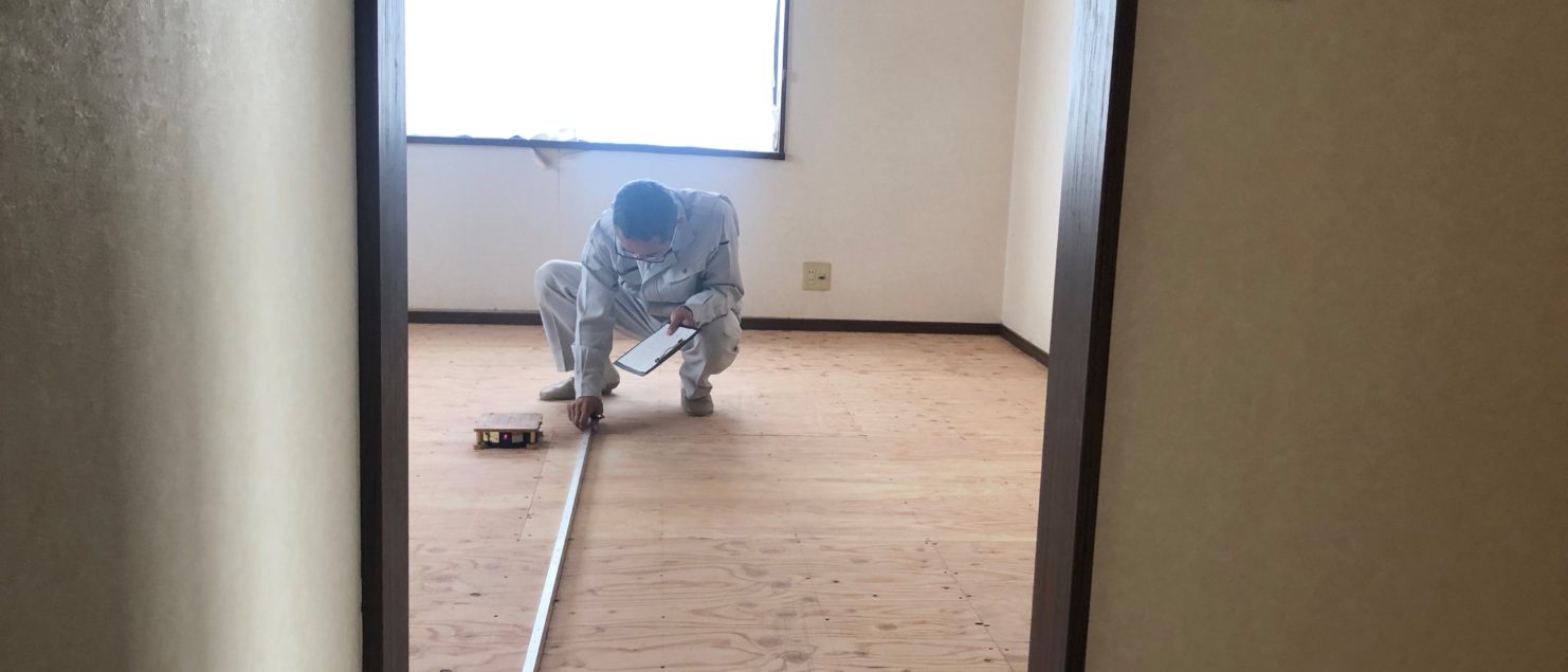 まずは、大工さんが終わったところで、畳屋さんの採寸です。この採寸で、ピッタリサイズの畳をつくることが出来ます!