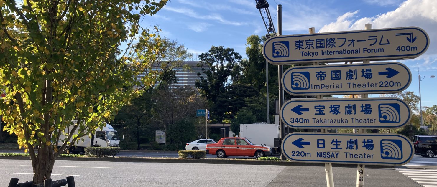 日比谷には3つの劇場があります。現場の日比谷マリンビル前の標識で、初めて気が付きました^^;