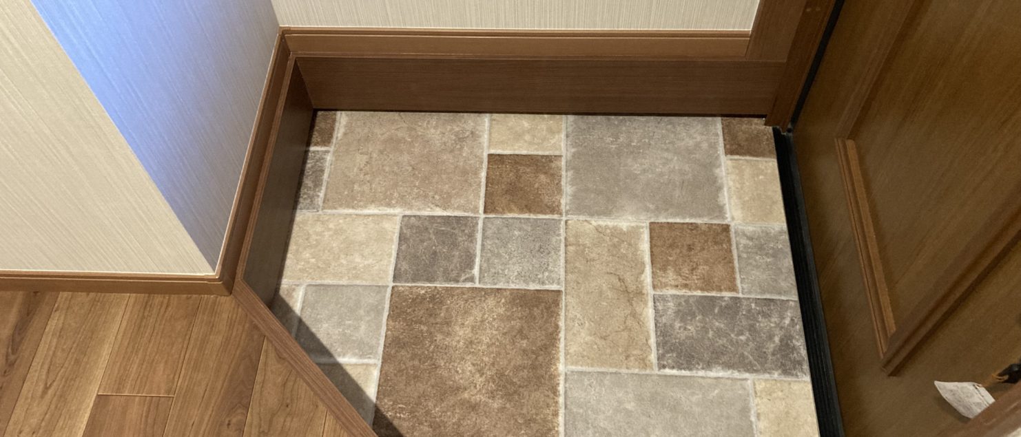 玄関土間:サンゲツSフロア 2022年1月27日 ブログ この土間はタイルでも石でもありません。 店舗用の土足対応のシートです! 今回、鴻巣の現場で二世帯住宅の子世帯側の玄関土間に採用。 タイルですとコストがかかるので、クロス屋さんが貼れる、土足用のシートを提案しました。 もともとは勝手口だったところを玄関にしました。 こちらは工事前のキッチンの勝手口でした。この勝手口を玄関にし、2階の子世帯側へアクセスできるように工夫しました! 床材も、クッションフロアで。階段も架け替えましたよ。 真空ガラス スペーシア TOTO川越ショールームにて