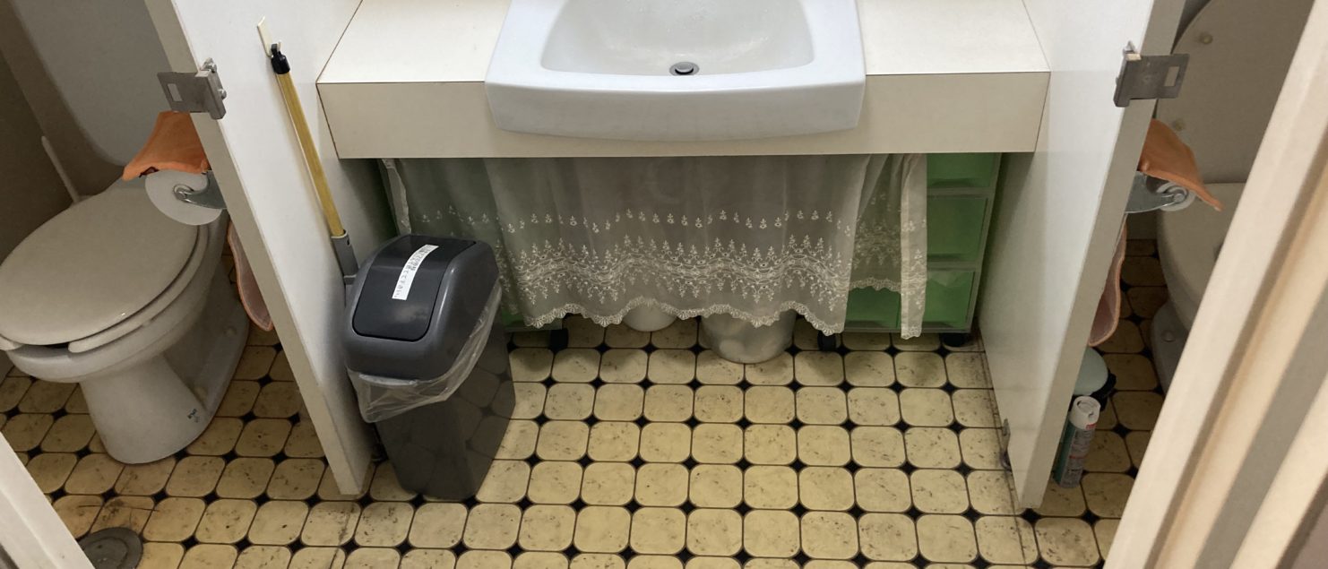 便器の劣化が著しいのと、床シートの剥がれもあり、便器の交換と、床の貼り替えです。