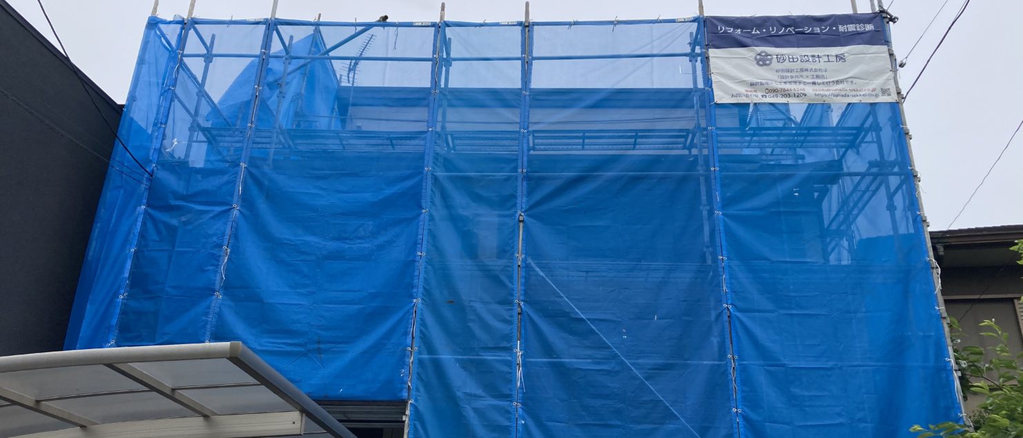 川越市小仙波町で、昨日仮設足場を組み、塗装工事が始まりました!