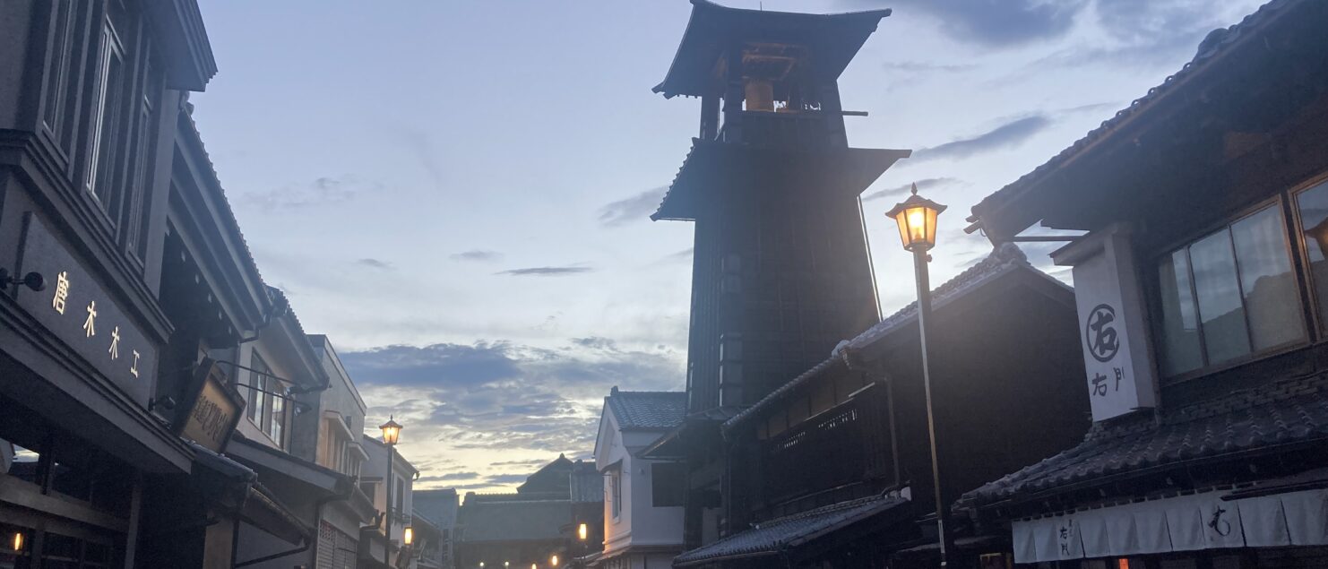 夕暮れ時の時の鐘 2022年8月12日 ブログ 昨日は、仲町にある、久々に「かぶや」さんへ、お好み焼きともんじゃを食べに行ってきました! 夕方、少し早めに行ったので、帰りはまだ明るく、ちょうど良い感じの黄昏時です^^ 帰りに通る鐘つき通りでは、時の鐘が出迎えてくれます。 大手町側から見る時の鐘は、西側の光を背にするため、シルエットが強くなりますね。 一番街から見ると、光を受けるため、くっきりと色が付きますね。 光の当たり方の具合で、見え方がずいぶん変わりますね^^ 裏宿通りにて 今日の散策活動