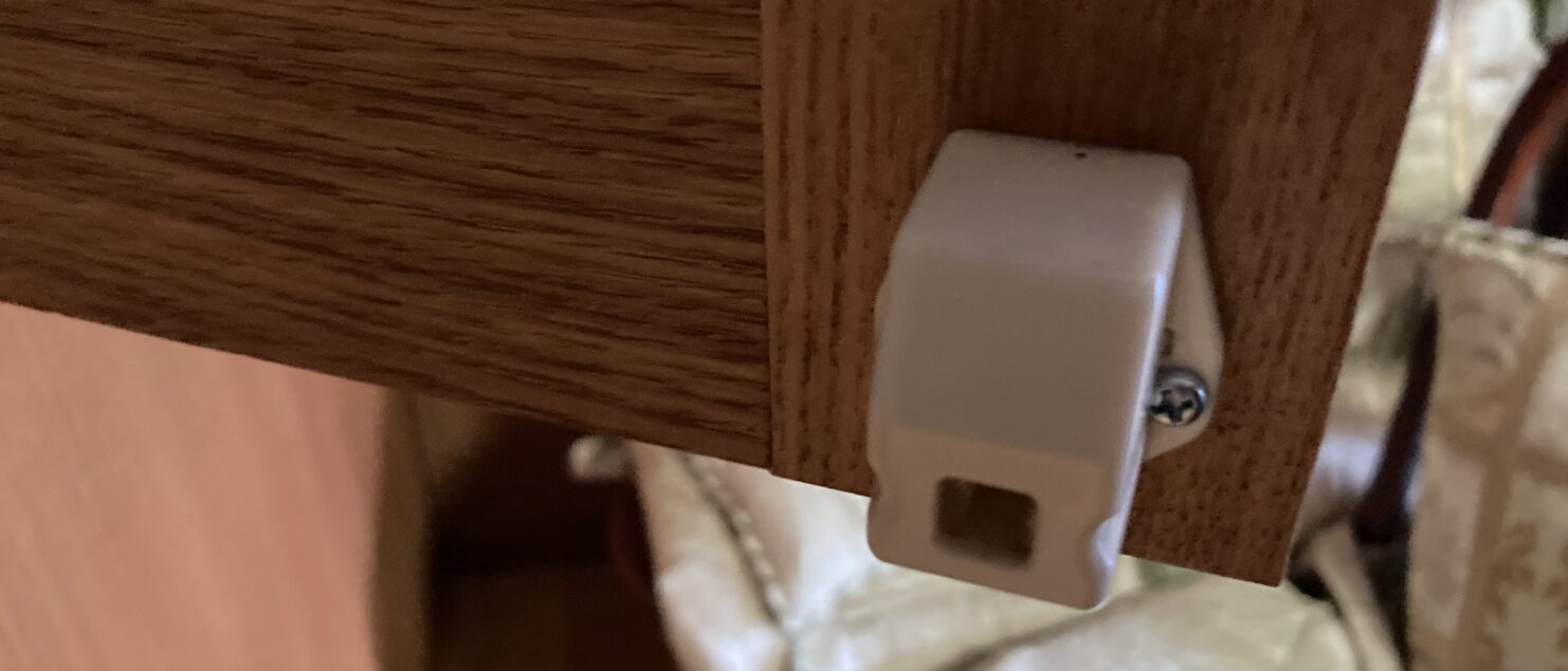 扉の裏についているラッチをやめて、単純にねじ止めをして、マグネットキャッチにしました!