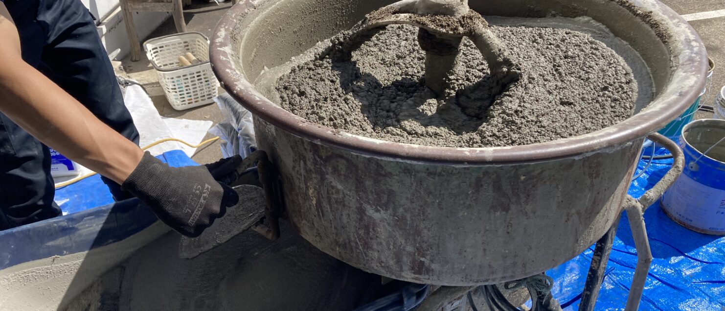 モルタルは、セメント1に対して、砂が3~4で調合。