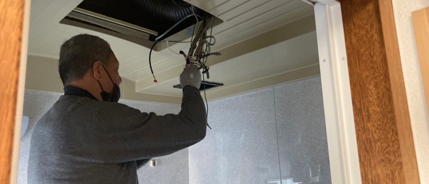 電気器具のリフォーム 2022年11月19日 ブログ 本日は、喜多町の町内で、電気器具のリフォームを行いました。 電気屋さんの浅見さんと、中道の立ち合いで、換気扇とインターホンの交換に行ってきてもらいました! ひとつは、浴室ユニットバスの天井換気扇。もう20年くらい経っているので、後継品を探して交換。 次はインターホン。今までは、一般的なインターホンでしたが、新しいインターホンは、パナソニックのテレビドアホンです。モニターが付いているため、誰が来たかがわかります。 浅見さんに丁寧に説明してもらいました^^ 仏壇スペースを考える 飲食店リノベ 造作中
