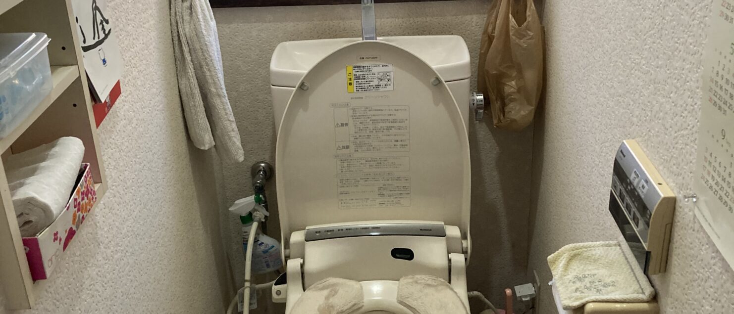 便器を交換してから、貼替えたくなったそう。タンクと壁との間も、4センチほど空いていたので、それならば貼れるよとクロス屋さんに言ってもらえたので、貼り替えることになりました!