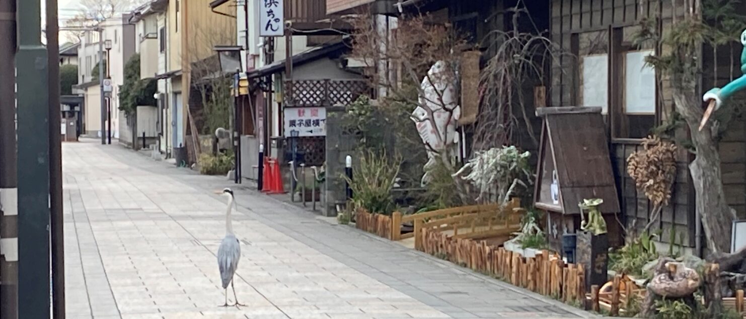 今朝、ふくまる店長と、いつものルートで歩いていると、見慣れないサギを発見!