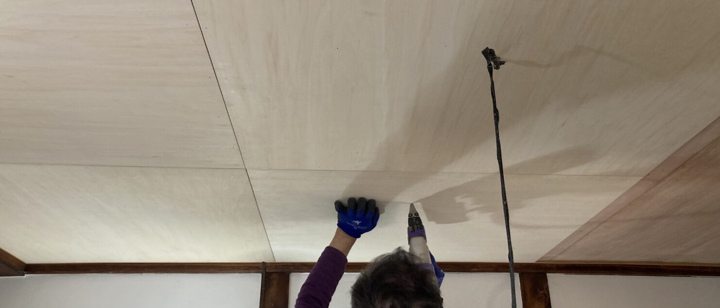 天井板の市松張り 2023年3月30日 ブログ 本日も台所の天井リフォーム。 昨日までに下地工事が終わり、本日は、シナ合板で天井仕上。張り方は、市松張りで。 台所は北側なので少し明るく仕上げたいので、ワトコオイルの「ナチュラル色」で仕上げました。 とても良い感じです^^ 仕上も明るく仕上がって良いのですが、天井裏の断熱効果がどこまで効果出るか、この夏、お客様の反応を聞いてみたいです^^ ふくまる店長のお友達 道路沿いの塀のメンテ