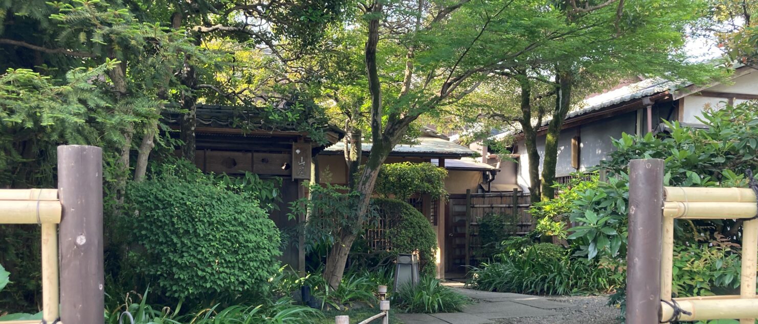 幸町の料亭山屋さんのアプローチには、モミジが。秋の色づきも綺麗ですが、この季節の新緑も綺麗ですね。