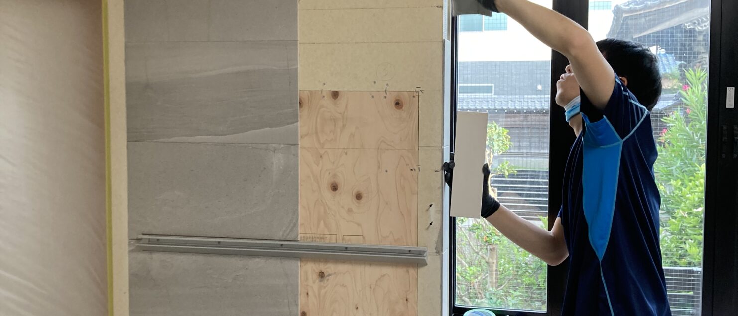 先週から、喜多町のお宅のリビングでエコカラットを貼っております。
