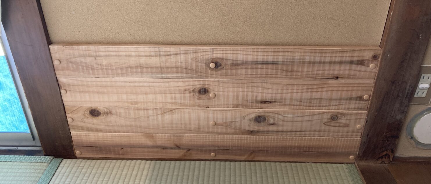 和室の壁に杉板で補修しました。