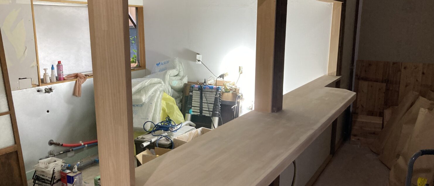 川島の飲食店のリノベ、大工さんに頼みたい造作は終わり、私の方でDISやっております!