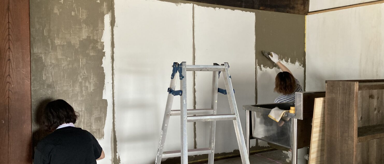 川島の店舗で、お客様が漆喰塗り 2023年9月14日 ブログ 川島の飲食店リノベでは、お客様が壁の漆喰塗りを始めました! 結構手慣れた感じで、どんどん塗っておりました。凄いです!! 元々は、漆喰にペンキを塗ったような既存の壁でしたが、、 ワラスサを配合した漆喰を用いて、雰囲気が出ました。 なかなかカッコイイですね^^ 今日は夜平 洗面台 タカラスタンダード「ファミーユ」