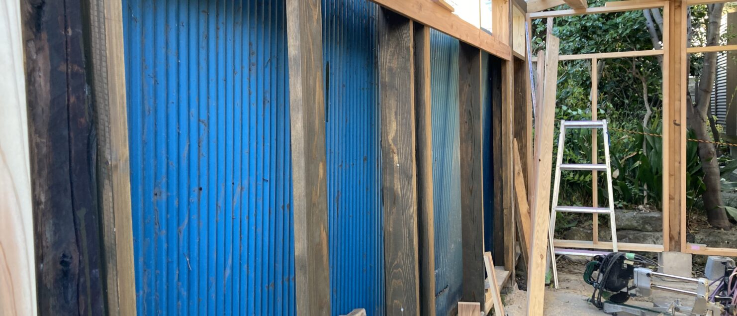 平蔵さん、テラスの造作 2023年11月27日 ブログ 先週から、喜多町の平蔵さんでテラスの造作をやっておりますが、少しづつ、大工さん工事が進んでおります。 先週は骨組みの造作と板加工などを行っておりましたが、今週からは板張りです! だんだんテラスっぽくなってきました^^/ 門扉の塗装 ほっぺさんのアイテム、いろいろ