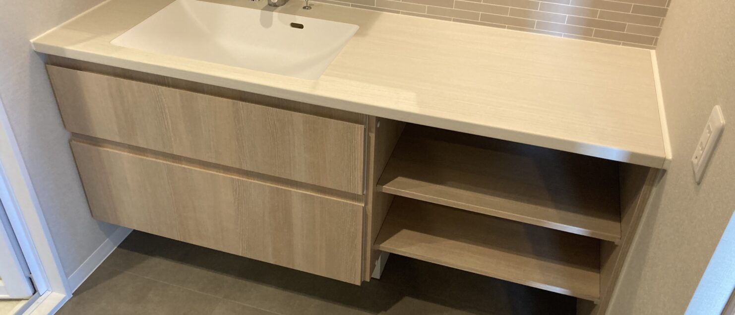 棚に扉 2024年3月4日 ブログ 本日は、ふじみ野のマンションにて、洗面化粧台の棚の部分に扉をつけてきました! このような綺麗な洗面台ですが、まずは鏡を大型鏡に変え、カウンター部にダイノックシートを張り、周囲のクロスを貼替えてスタイリッシュな雰囲気に。 さらに、下の棚部分に扉を付けました。 アルミ枠ですりガラス。良い感じです。 施工は、野原建具の福原さんが担当。丁寧に調整をしていただきました! 川越氷川神社の氷川会館にも携わった方です。 春ですね^^ 良い天気でした^^/