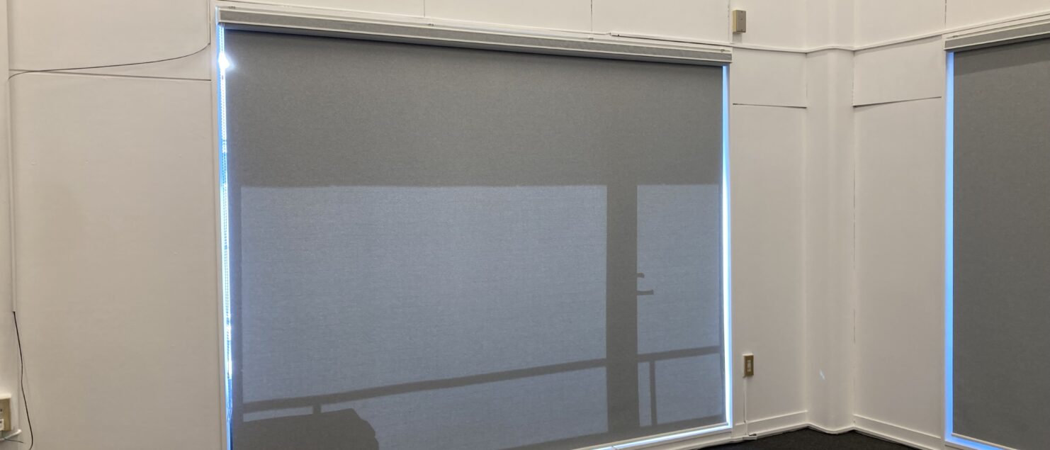 本日は、先日完工したピアノのショールームにて、窓にロールスクリーンの取付を依頼され、作業を行いました!