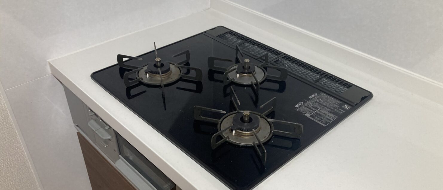 掃除性を良くしたいということと、グリルなどの機能を充実させたいということで、リンナイの「DERICIA」というガラストップのガスコンロ。