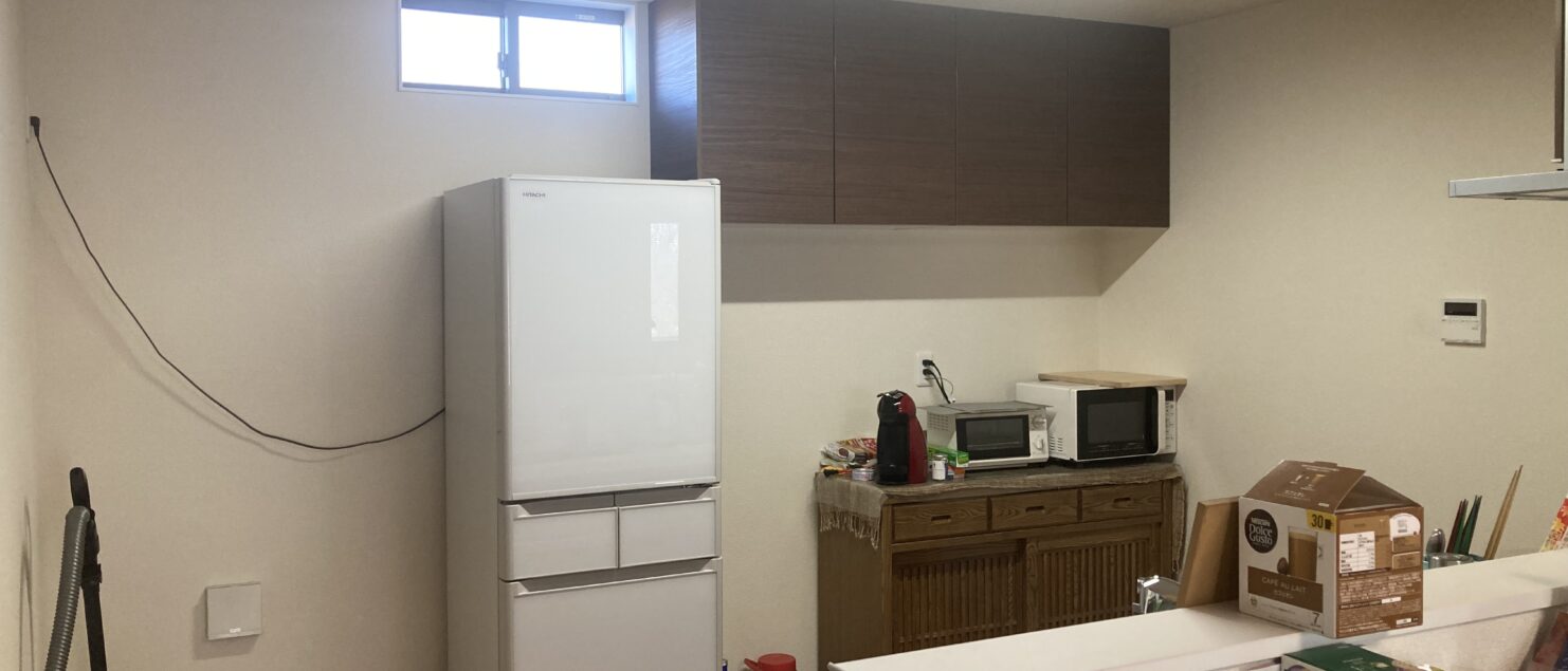築5年程度のお宅で、冷蔵庫や既存の収納の位置など、まだ配置が落ち着いてない様子でした。