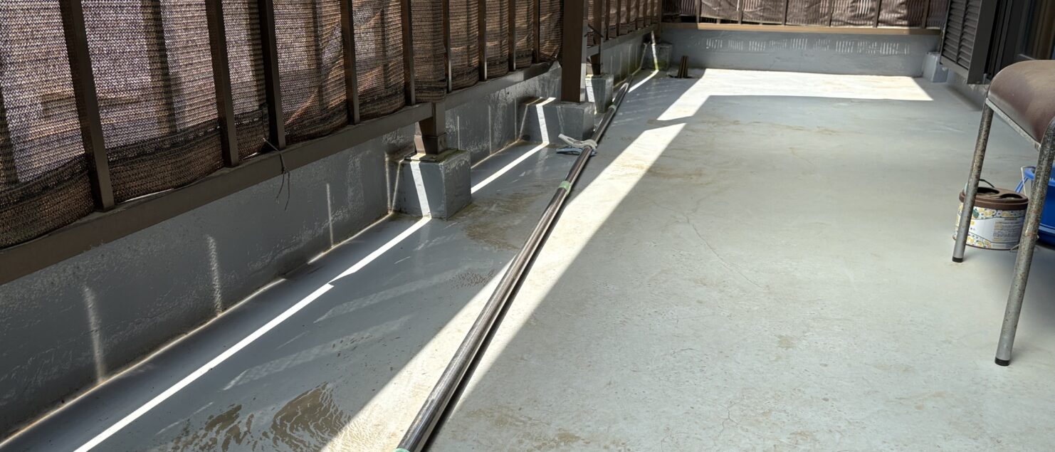 バルコニーの防水工事 2025年7月3日 ブログ 本日から、志多町にあるお宅では、バルコニーの防水工事を始めます。現在、床の一部にひびが入っており、そこから入った水が水蒸気になり、膨れたりしているところがいくつか見受けられます。 放っておくと、雨漏りの原因にもなるため、今回はウレタン塗膜防水を行います。まずは、表面をケレンして、膨れているところの塗膜を剥がして、カチオン系の薄塗材で、下地調整を行います。 明日は、プライマー塗布やシート張り、水蒸気での膨れ防止を考えて脱気筒を付けたりしていきます! 台所の床 断熱材入れ~床張り 台所の床