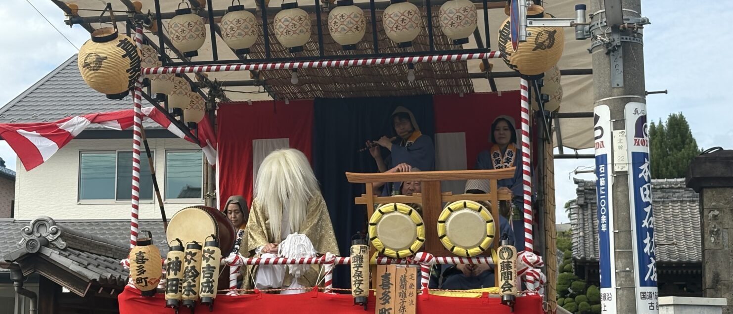 喜多町は、「陰まつり」。今年は山車を出さないので、居囃しで盛り上げます。山車を出す年は、お囃子さんは山車にのるので、山車が出ると、辺りは静かになるのですが、居囃しになると、一日中、お囃子の演奏と踊りが見れるので、これはこれで、楽しい祭りです^^