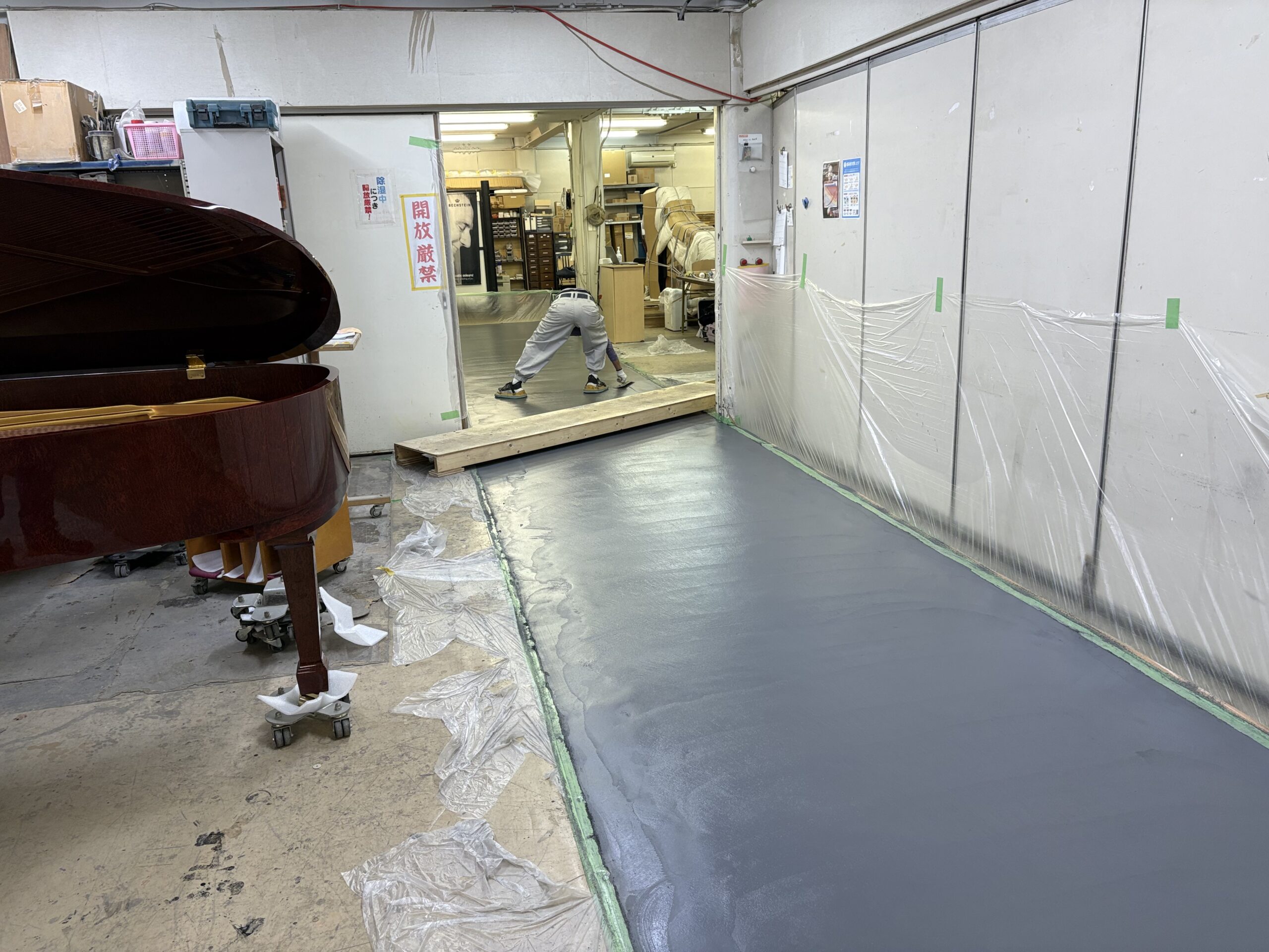 八王子のピアノの工房では、本日は土間にモルタル打設です!