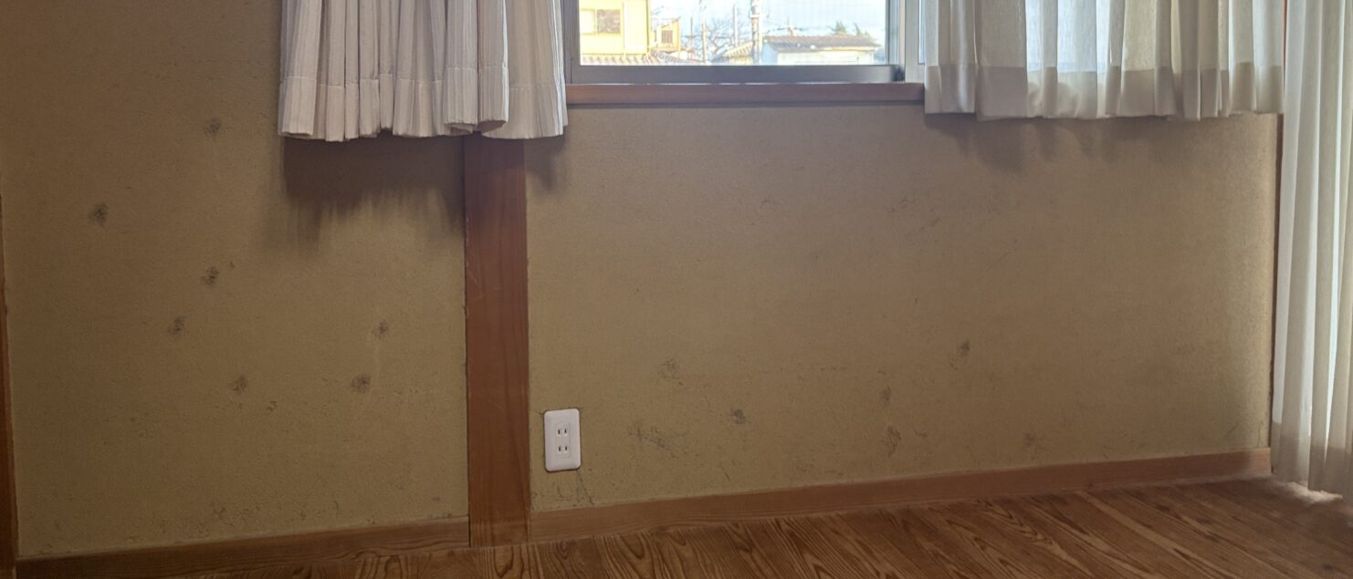 土壁のメンテナンス 2026年1月30日 ブログ 今週は、石原町の住宅にて、土壁のメンテナンス。 既存の壁、どんな材料か、当初のお見積りの内容には「卵漆喰」と記載。でも実際は、藁すさが入った珪藻土のような雰囲気。 いずれにしても、古壁に塗れるものは限られてきます。そこで、古壁に対応している、四国化成の「ジュラックス土壁」を採用。 色は近い色がありましたので、残す壁と違和感ないように慎重に色を選定。 一昨日に下塗りしてもらい、。本日、上塗り。 藁すさも入れて、左官屋さんに塗ってもらいました! LECさんでディナー 今年初めのホシレコさん