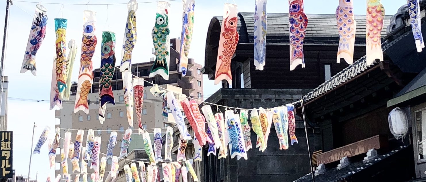 川越の風物詩 こいのぼり 2021年4月23日 ブログ 先日、川越駅近くのクレアモールへ向かう中、大正から昭和初期のレトロな商店街がある、「大正浪漫夢通り」を通りましたら、こいのぼりが泳いでました。800匹泳いでいるようです。 こいのぼりは、鮮やかな色が使われるから、晴れると清々しいこの季節にぴったりですよね。 また、川越のレトロな雰囲気にも合いますね^^ 日本の七十二候:穀雨 霜止出苗(しもやんでなえいづる) 日本の七十二候:穀雨 葭始生(あしはじめてしょうず)