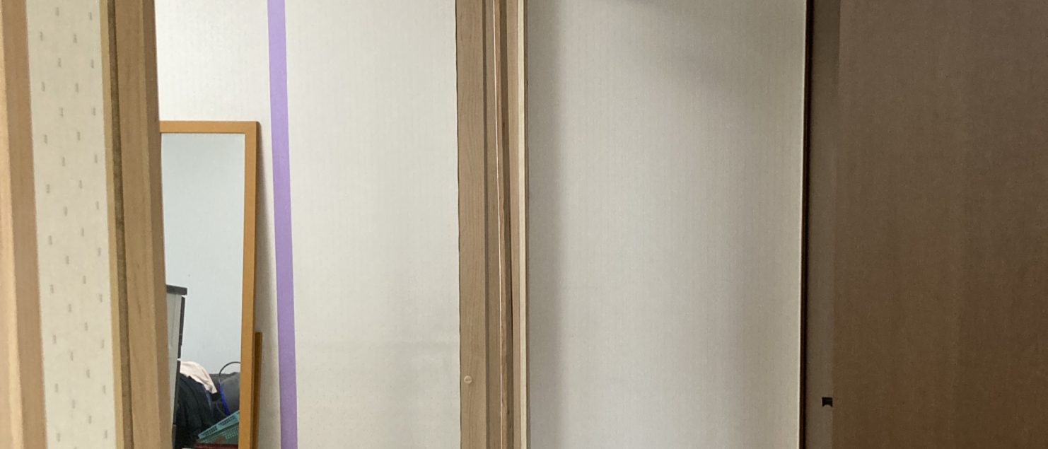 パナソニックの2枚連動引戸で寝室とを間仕切りして、既存のクローゼット扉を撤去。