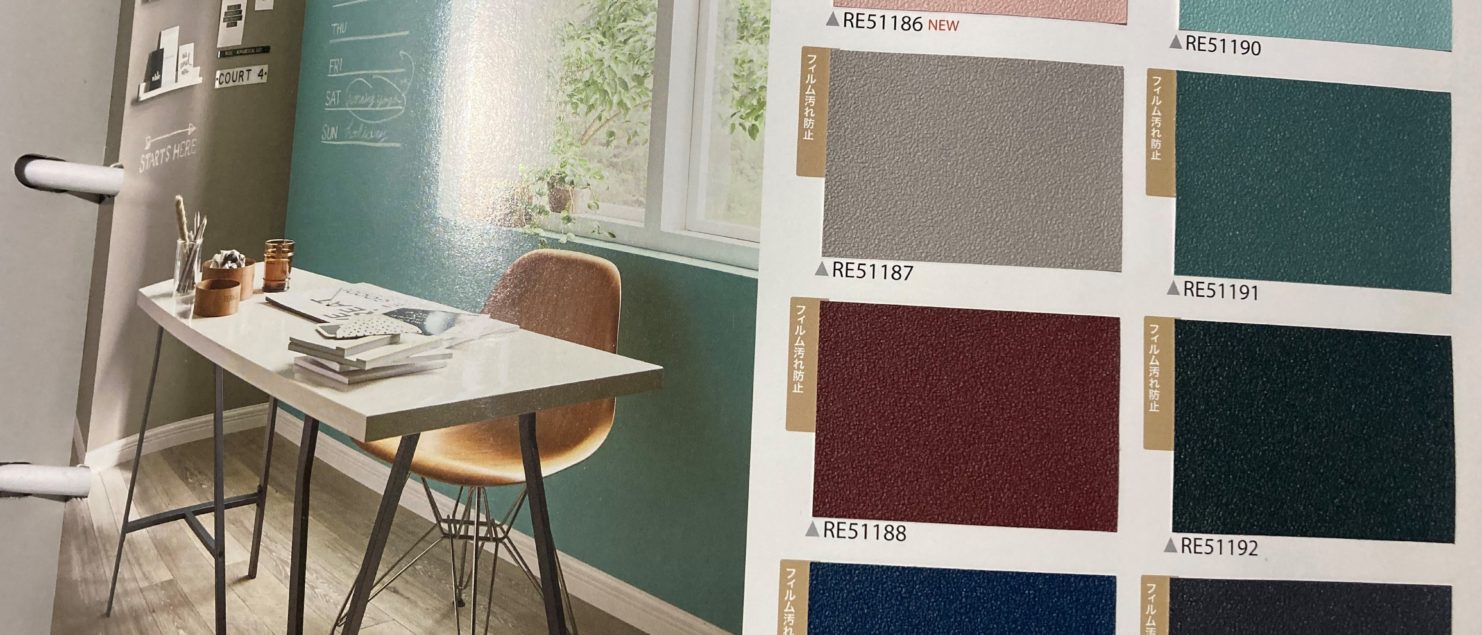 こちらの壁紙は、チョークで描ける壁紙で、サンゲツから「Blackboard」という名前で、8種類の色があります。