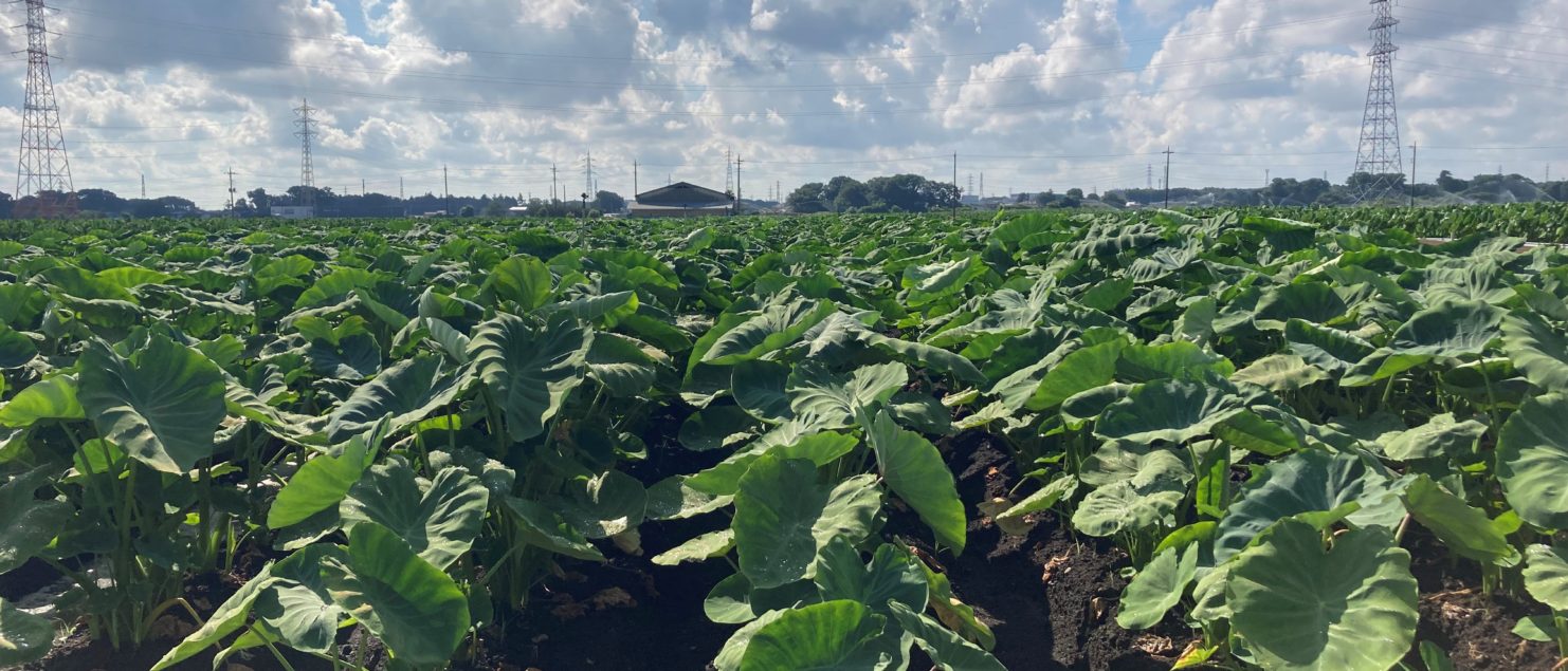 現場までいつも通る道は、茶畑だけでなく、里芋畑も多くみられます。