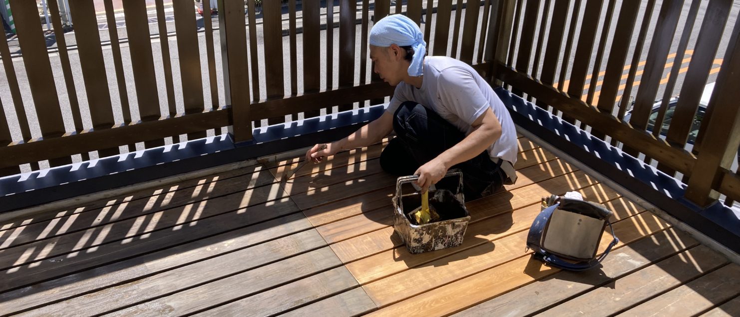 バルコニー ウッドデッキ 2021年8月5日 ブログ 元町でバルコニーの木部を塗装しています。 手すりの塗装が終わり、床面のデッキを補修し、塗装してもらいました! とても綺麗になりました^^/ 現場の近くでは、夏の花、さるすべりがとても綺麗に咲いていました。 夏ですね^^ 洗面所の床 根太補強 初山のあんころ餅