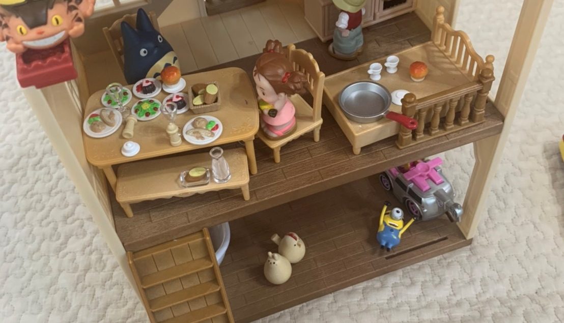 良くみると、シルバニアファミリーの中に、トトロやミニオンがいらっしゃいますね!