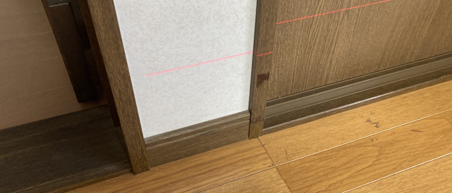 レーザーレベルで、いくつかのポイントを確認し、どこが下がっているかをチェックしました。