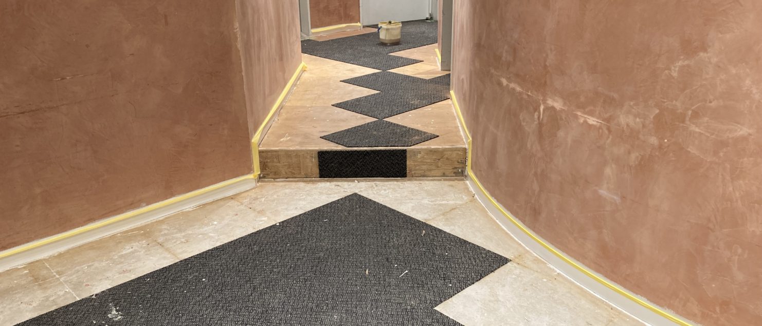 先日、日比谷の店舗で、壁に「ダイノックフィルム」を貼る工事を行いました!