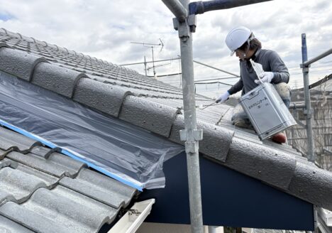 本庄市の現場では、昨日屋根と外壁の洗浄が終わり、本日から塗装開始! まずは屋根の下塗り。明日から雨降...