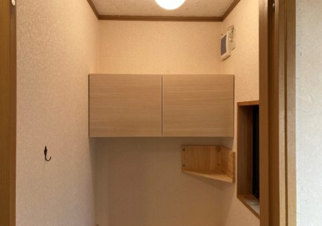 先日、行ったトイレリフォームで追加工事がございまして、吊戸棚を付けたいとご要望がありました。 私が無...
