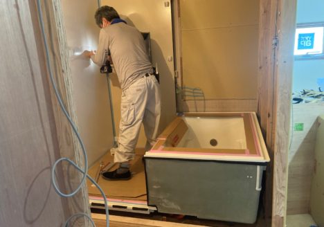 現在、2世帯住宅の現場作業を行っていますが、昨日は2階のシステムバスの設置を行いました。 採用したシ...