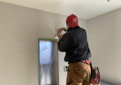 上尾市のドッグカフェのリフォームも、仕上げ段階に入りました! 厨房の壁は、パテ処理してフラットに下地...