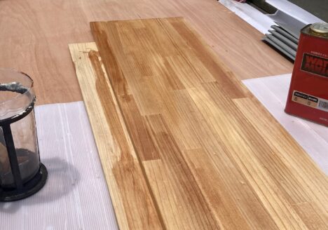 明後日、小仙波町のお宅で、棚を付けることになっており、あらかじめ付ける棚に、自然塗料を塗布しました。...