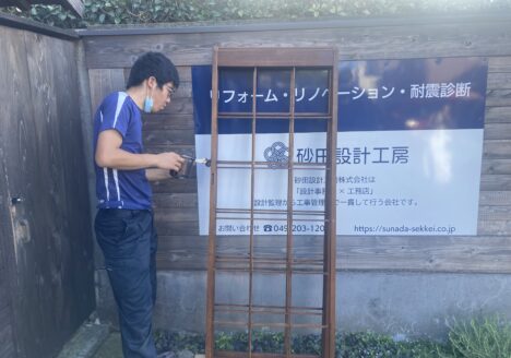 本日は、現場から引き上げて処分する予定だった、障子にクロスを貼りました! 夏の暑いころ、中道氏にニス...
