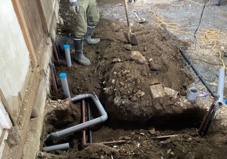 喜多町の飲食店リノベは、一昨日から土間コンクリートの打設です! 現場の前は、観光客がゾロゾロ。車の通...