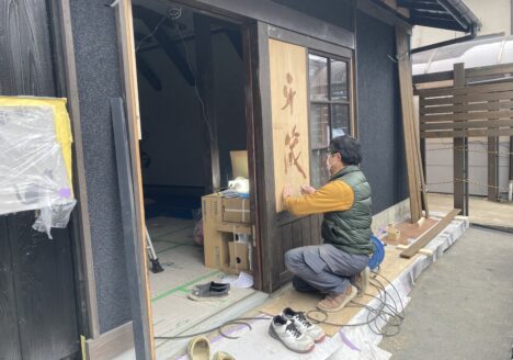 喜多町の飲食店では、南通町から移設した看板の修復作業。 看板は、木工房やまめ屋さんが手掛けております...