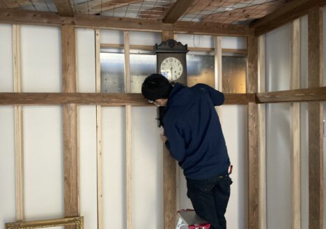 本日は、幸町のフォトブースの現場で、古時計とシャンデリアの位置をお客様と打合せをして、中道が取り付け...
