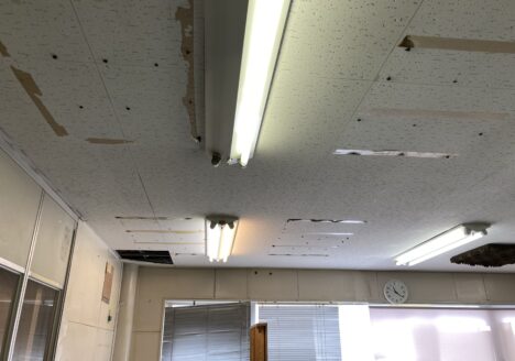 本日は、八王子のピアノの工房で、事務室の天井のジプトーンのメンテナンスに行ってきました! 吸音板の痕...