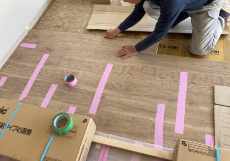 ふじみ野のマンションでは、現在、直貼りフローリングの真っ最中。 直貼りフローリングとは、不織布のクッ...