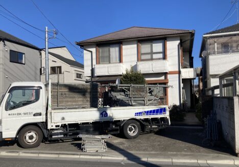 本日、小仙波町にて、屋根外壁塗装工事に伴う、仮設足場の組み立てを行います! 今回の足場工事のBK-W...