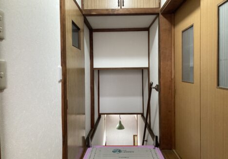 本日も郭町での作業。 前回、砂壁の上に合板の捨て貼りを行いまして、本日は、クロス屋さんに壁紙を貼って...