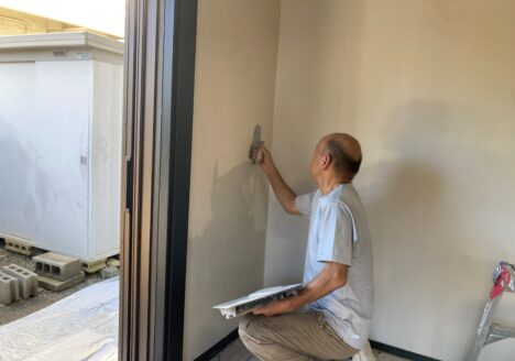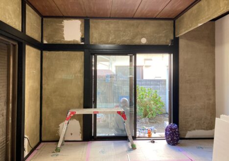 本日、宮下町の空き家リフォームでは、左官屋さんが和室の京壁だったところの壁の塗替えで、今回は四国化成...