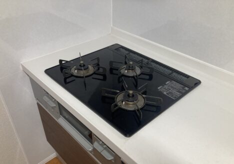 本日は、ガスコンロの交換。 現在は、システムキッチンを選ぶ際に標準仕様のプランに組み込まれるホーロー...