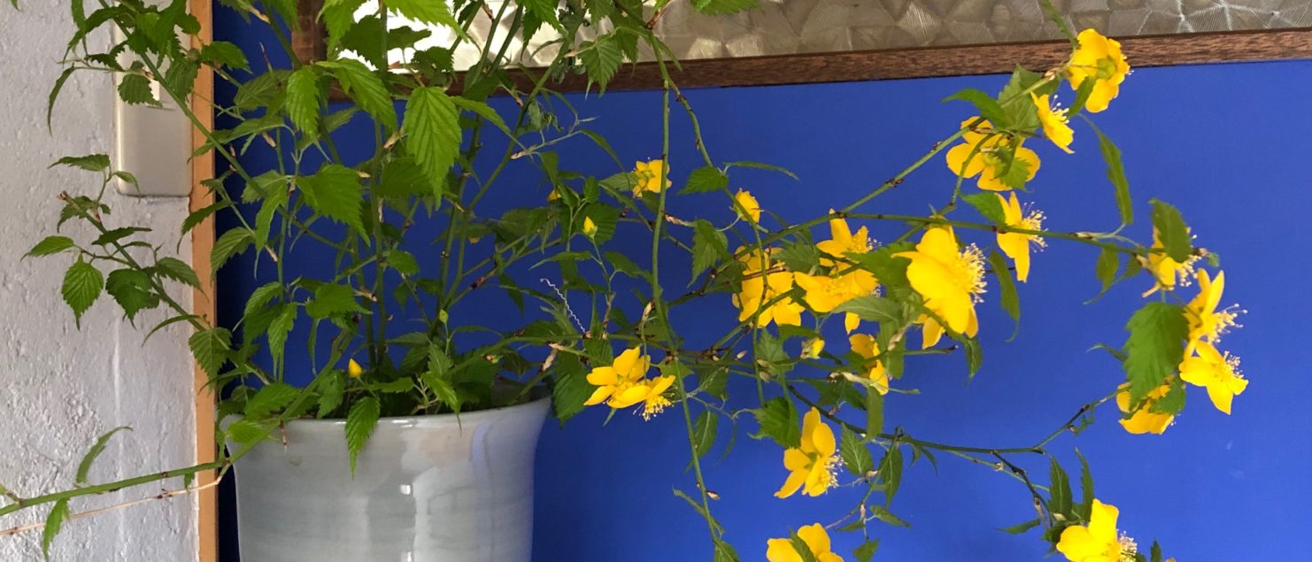色関係 2021年4月23日 色相環で、青の反対側にある黄色 メリハリの利いたコーディネートをするには最高!! ゴッホの絵には青と黄色が多いらしい・・ ちなみに写真の花は、私が大好きな「ヤマブキ」 川越の花でもあり、花言葉は気品、崇高、金運 花言葉もすばらしい💛 寄木細工 玄関リフォーム